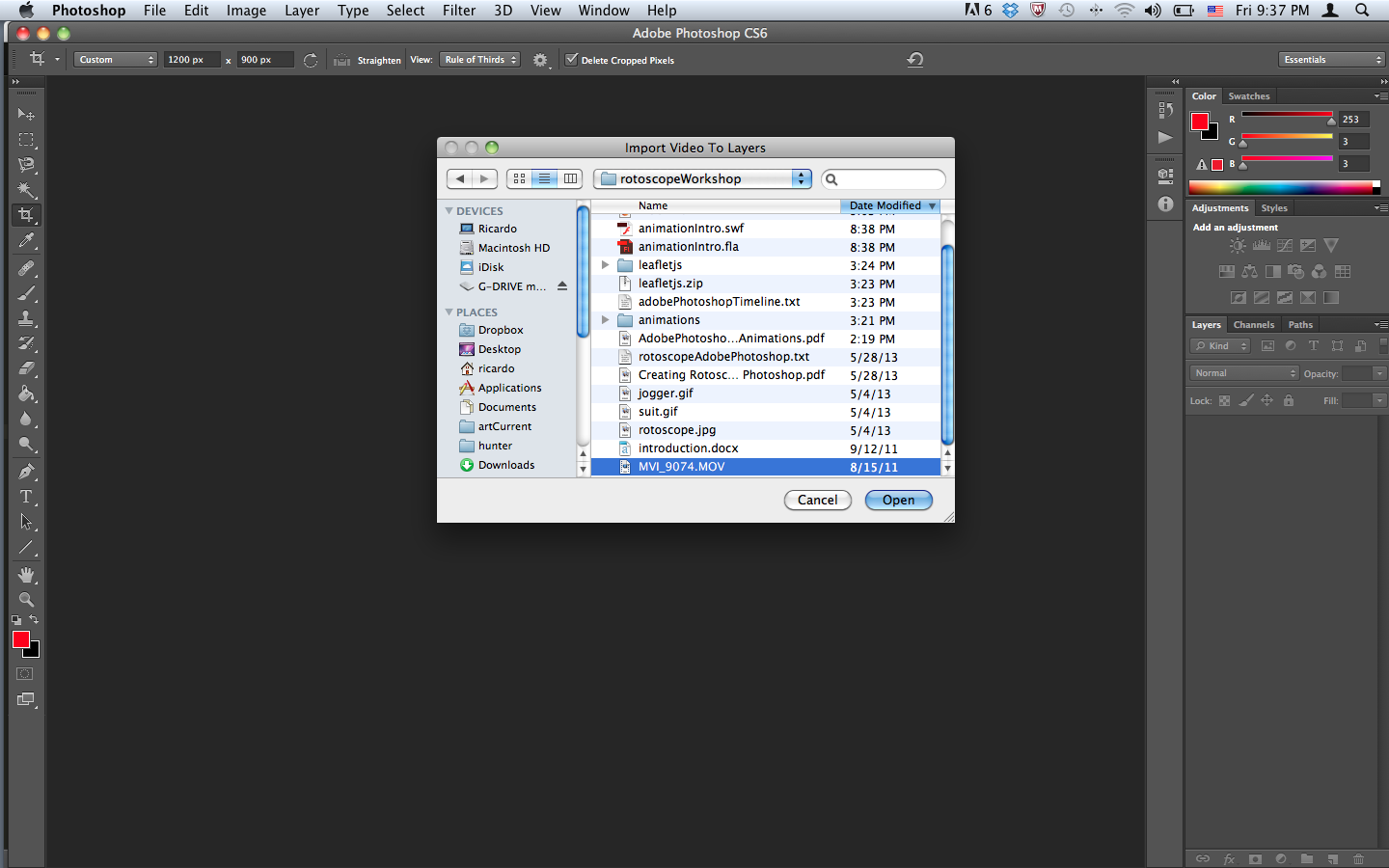 3. File > Import > Import To Stage and select all the exported PNG files (see steps 1-6 above to export video as an image sequence usign Photoshop)