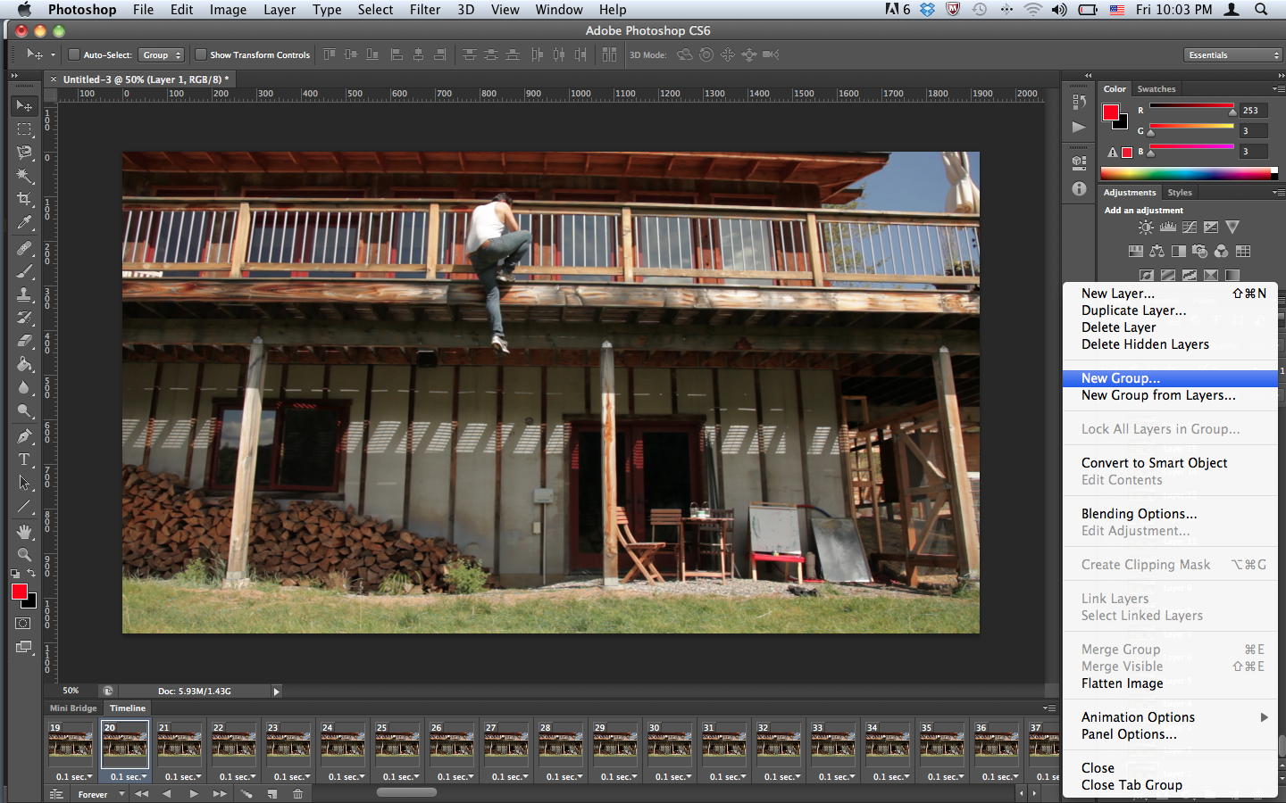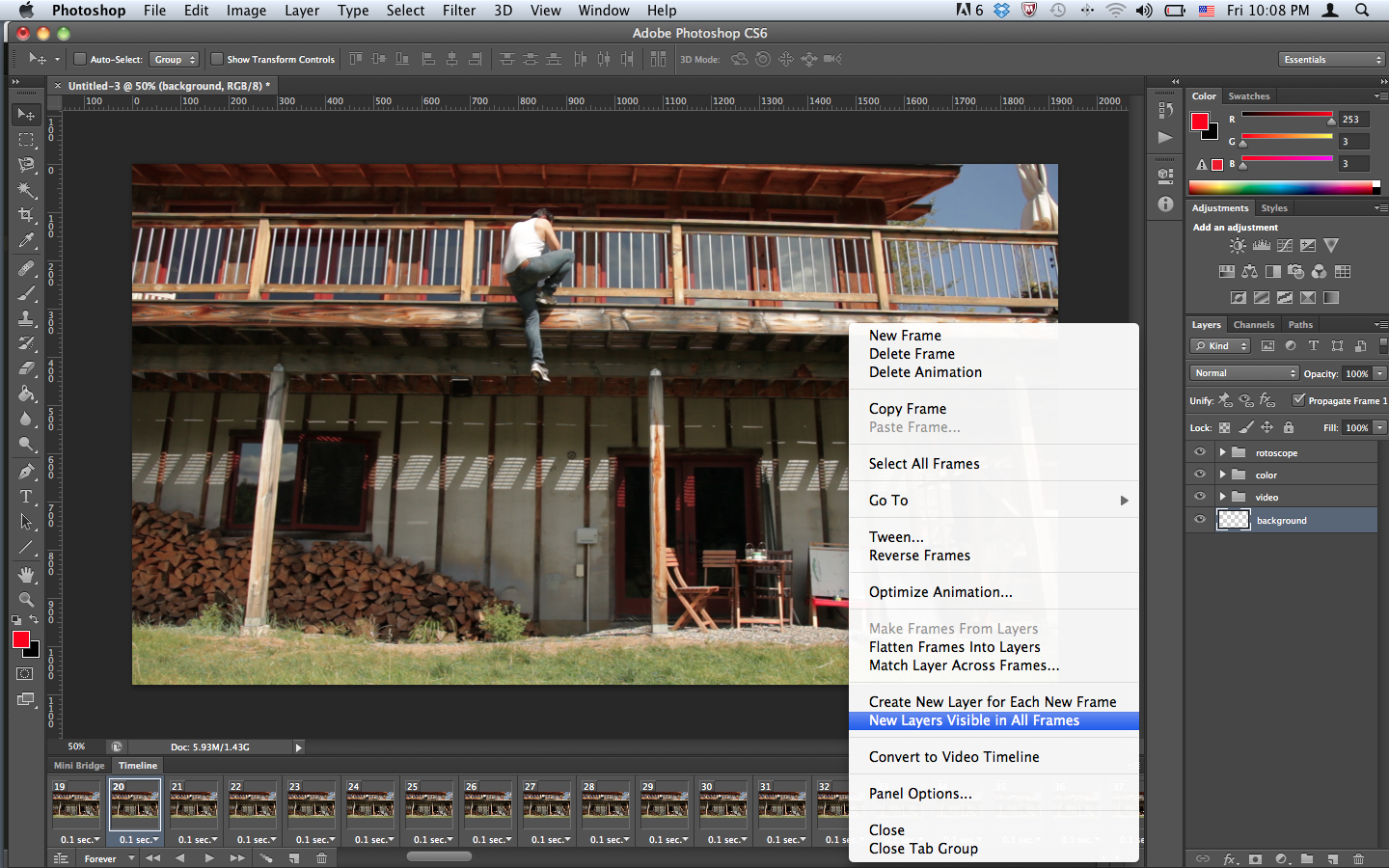 NOTE: If you wish to export the frames as files to work in a different application, do so now: File > Export > Layers to Files and be sure to export to a new folder. I recommend exporing as JPEG at a quality of 10.